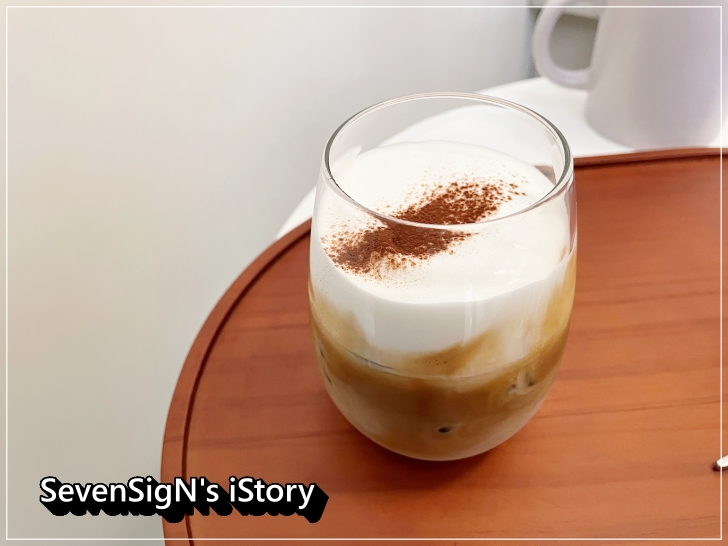 부드러운 크림이 두껍게 층을 이루며 라떼위에 얹어 있어서