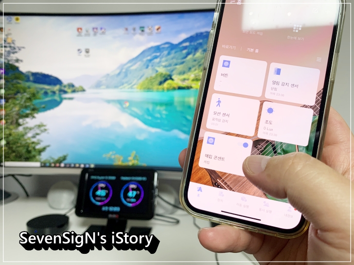 제 모니터를 켜두고 스마트 플러그로 연결해본 모습인데요, 앱에서 버튼만으로 모니터를 켜고 끌 수 있습니다.