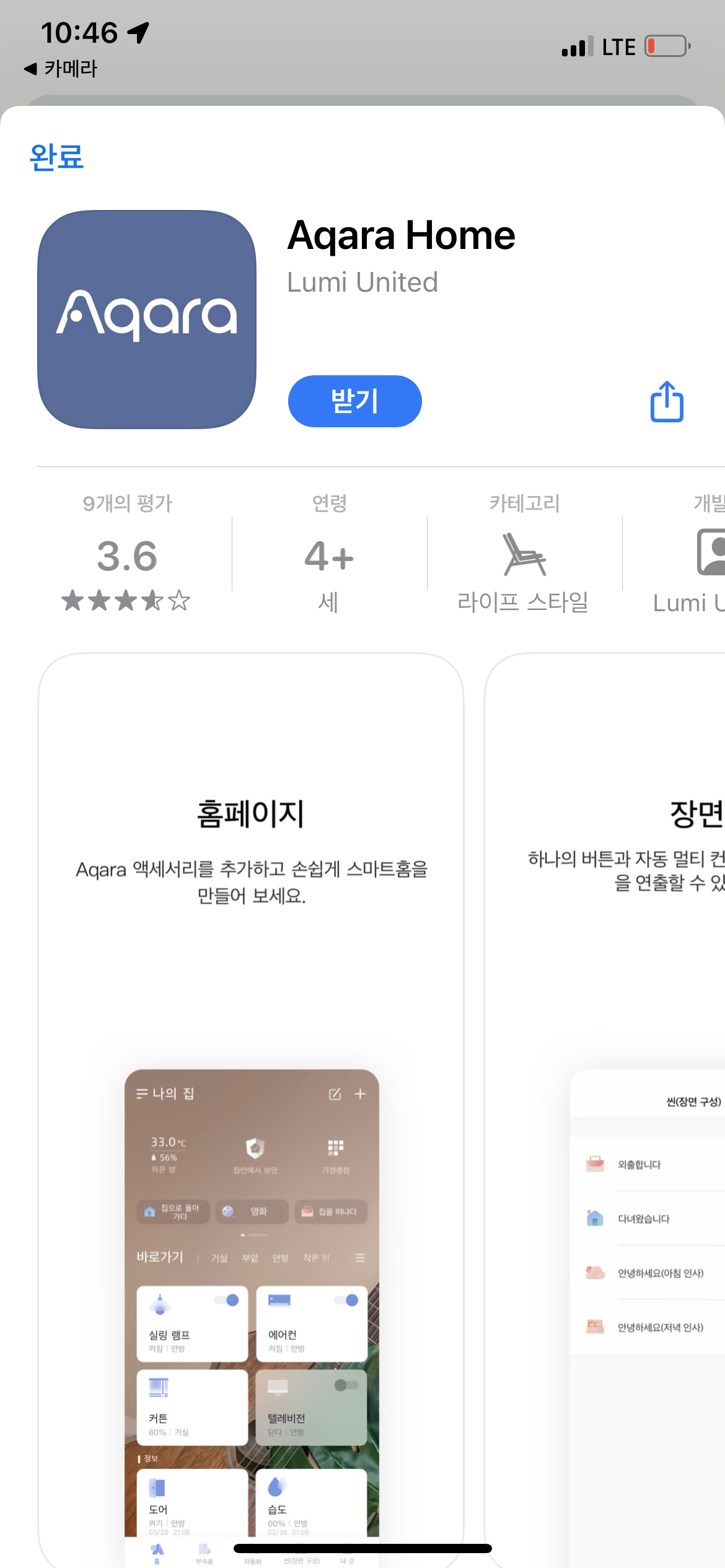 일단 스마트 홈 허브를 통해 스마트 홈 키트를 이용하기 위해서는 앱스토어에서 Aqara Home 앱을 다운로드 하고 나서 허브를 먼저 연결합니다.