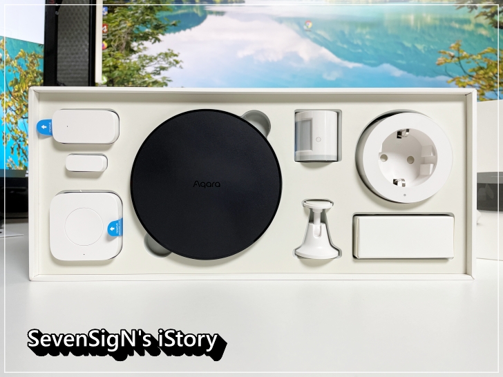 박스를 오픈하면 이런 모습으로 구성되어 있는 스마트 홈 키트를 확인할 수 있습니다.