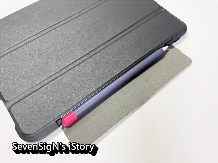 | 펜슬은 아래와 같이 아이패드 측면에 부착을 하고 작은 커버를 닫으면 수납 및 보호가 됩니다.