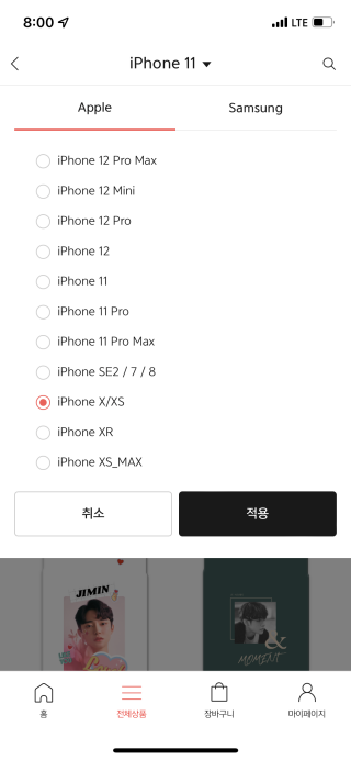 저는 아이폰 12용과 아이폰XS용을 주문하려고 했는데