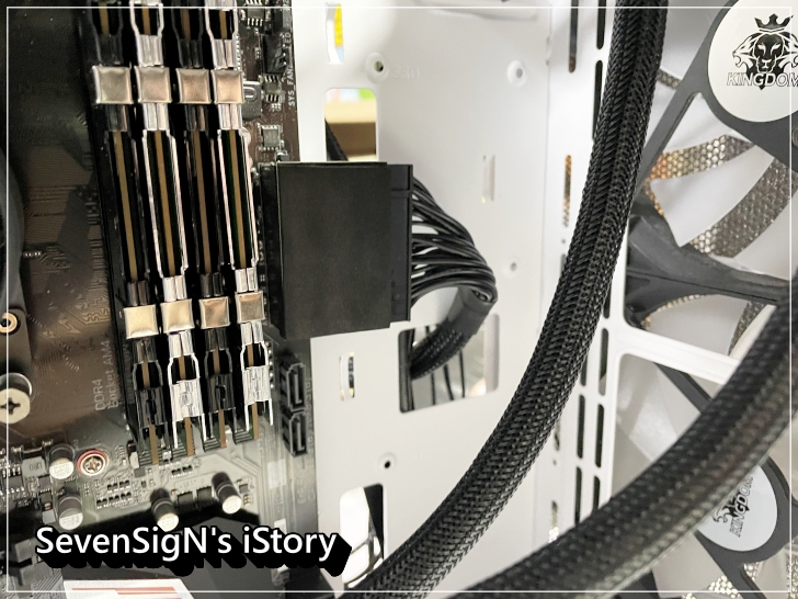 | ㄱ자형 젠더를 사용중이라 메인보드 전원 커넥터를 꽂은 후 메인보드에 연결해주었습니다~