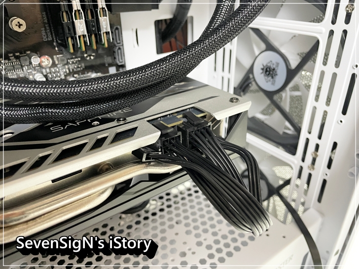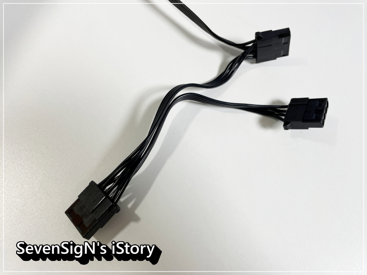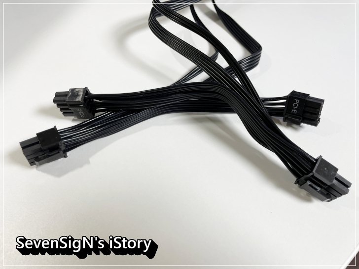 | 그랙픽카드용 PCI-E 케이블은 모두 4개가 크로스파이어나 NVLink로 멀티 그래픽 카드를 사용하는 분들은 별도의 젠데를 이용하지 않고도 연결할 수 있을 것 같습니다. 다른 컴퓨터에 RX580이 또 있어서 크로스파이어를 생각해보기도 했는데, 장착하더라도 케이블 걱정은 안할 것 같습니다.