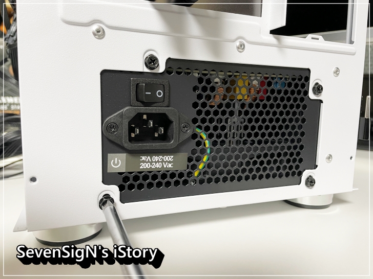 | 케이스와 조립용 나사로 결합이 되는 면이죠. 전원케이블 아래에는 별도의 버튼이 있습니다.