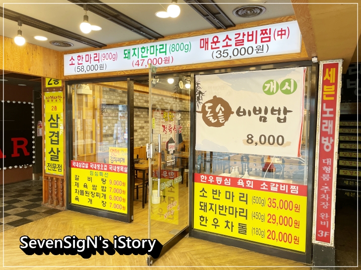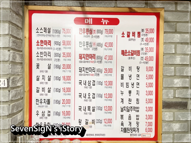 밖에서 보기에 소한마리, 돼지한마리와 소갈비찜까지 침흘릴만한 메뉴명이 눈에 띄더라구요.