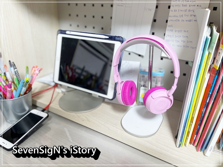 | 공부할 때 주로 헤드폰을 사용하는 아이 책상위에도 올려둬봤는데요, 아이도 보관하기 편해서인지 마음에 들어하더라구요. 아마도 이 자리에 계속 자리잡게 되지 않을까 싶네요 ㅋ