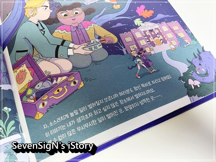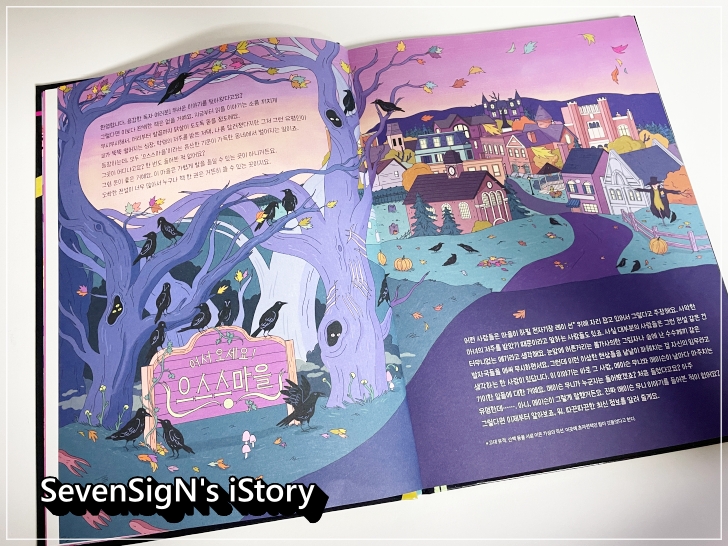 책을 펼치면 자못 으스스한 분위기가 잘 표현되어 있는 페이지를 만나게 되는데요,