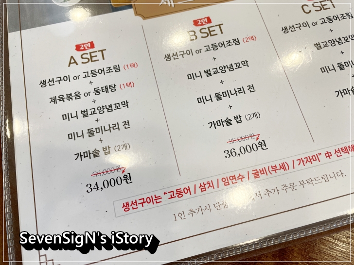 메뉴는 세트메뉴와 함께 꼬막요리, 생선요리로 준비되어 있는데요,