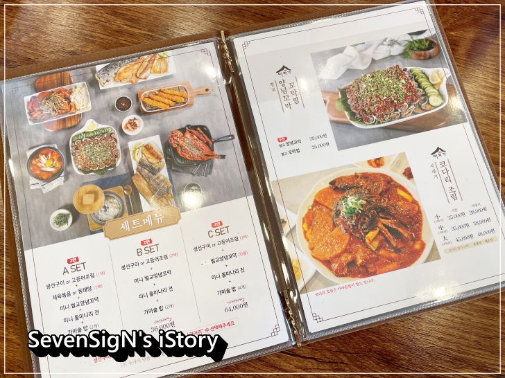 메뉴는 세트메뉴와 함께 꼬막요리, 생선요리로 준비되어 있는데요,
