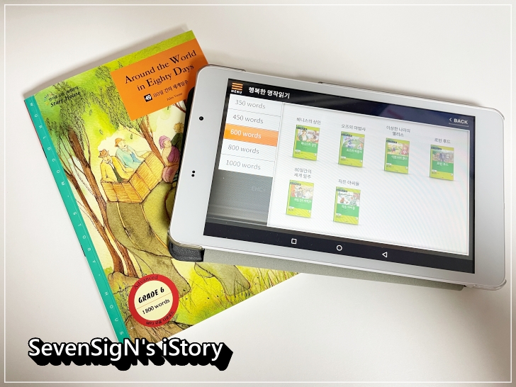 별도로 종이책 볼 필요없이 단어수에 맞춰 수준별로 영어리딩북을 태블릿으로 볼 수 있습니다.