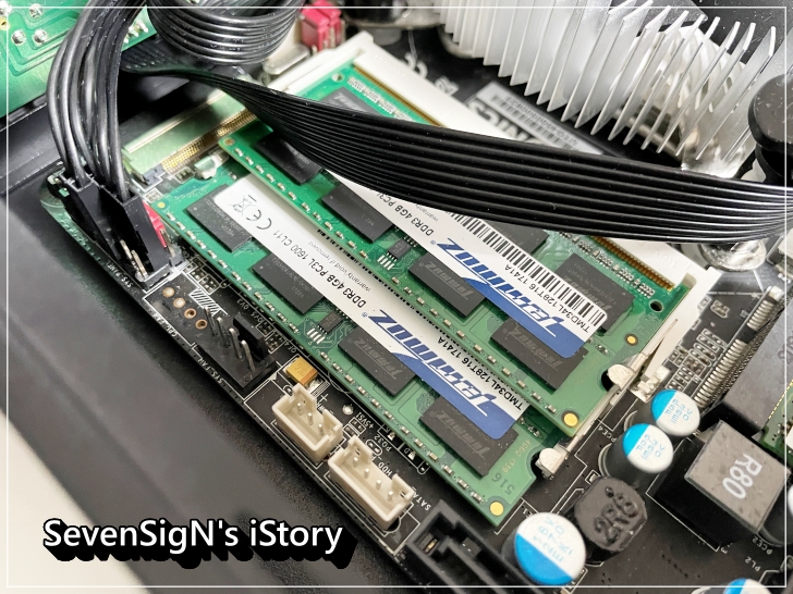 | 인텔 스카이레이크 CPU를 지원하는데, 사진에는 쿨러때문에 안보이지만 G4600이 탑재되어 있습니다. G4600이면 현재도 사무용이나 동영상 감상용으로 부족함이 없죠. 일반적으로 H110 보드는 DDR 4 메모리를 사용하는데, 특이하게도 TH110-HM 은 DDR3 메모리를 사용하더라구요. 그래서 아래의 메모리는 DDR3 4G 짜리 2개입니다.