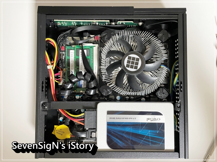 | 지지대를 이용해서 SSD도 장착하고 선을 연결해주었는데요, 나중에 봐서 NVME 방식 SSD로 교체를 할까 합니다. 그러면 2.5인치 HDD를 하나 추가로 달 수 있을 것 같거든요.