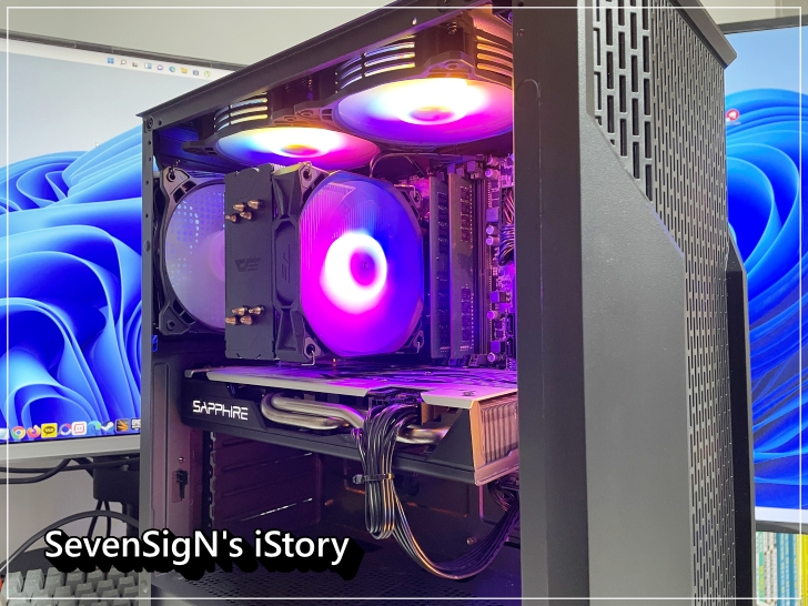 | darkFlash Ellsworth S11 PLUS ARGB의 팬이 신나게 돌면서 화려한 불빛도 뿜어주니 기분이 일단 시스템이 안정적이겠다 싶네요 ㅋ
