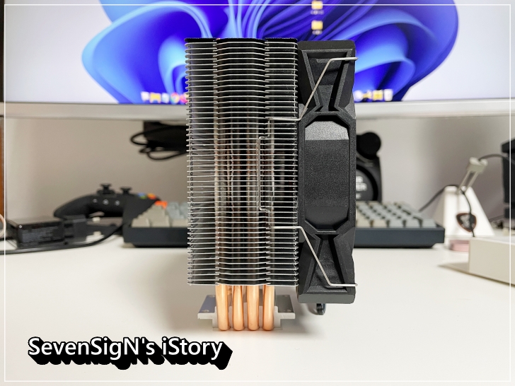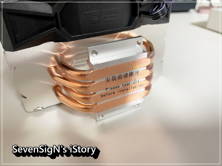 | 쿨러는 공기 흐름에 최적화된 알루미늄 히트싱크와 4개의 히트파이프로 구성이 되어 있는데요, 180W TDP (열 설계 전력)으로 고성능 프로세서의 발열을 잡아주며 시스템을 안정적으로 유지하는데 도움을 줍니다. 장착할때 아래의 보호비닐 제거하는 거 잊지 마시구요.