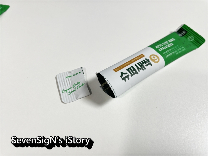슈퍼새싹9은 EASY CUT 방식이라 간단하게 손으로 개봉해 먹을 수 있습니다.