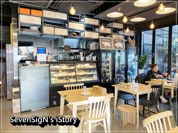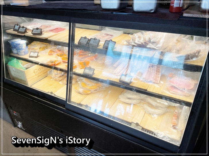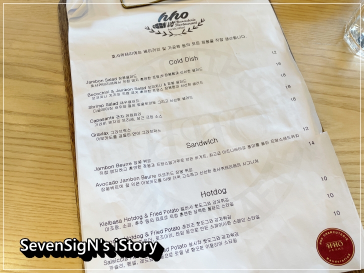 매장에서 직접 염지, 훈연한 샤퀴테리를 이용한 샌드위치, 핫도그가 있습니다.
