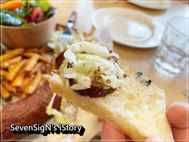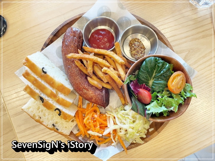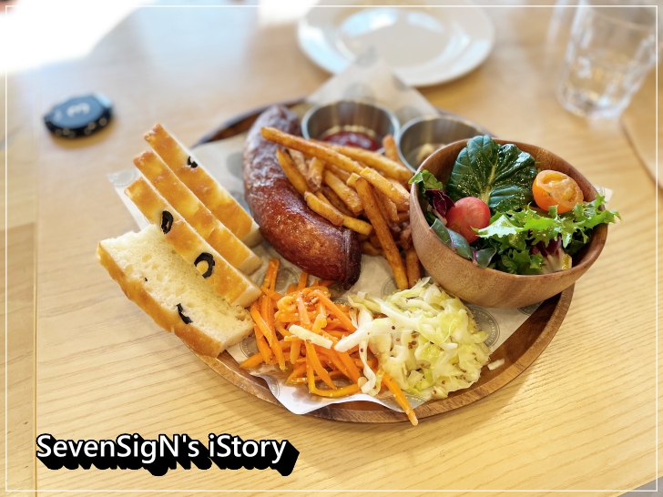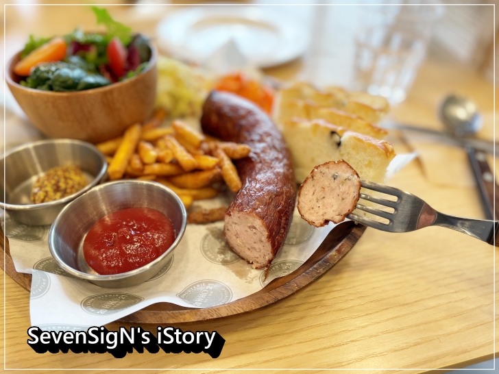 샐러드에서는 신선함이 느껴지고, 수제소시지의 짭쪼름함, 식빵 등