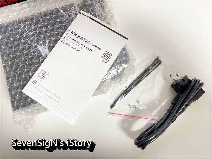 | 설명서외에 전원 케이블과 케이블 타이, 그리고 파워고정용 나사도 포함이 되어 있습니다.