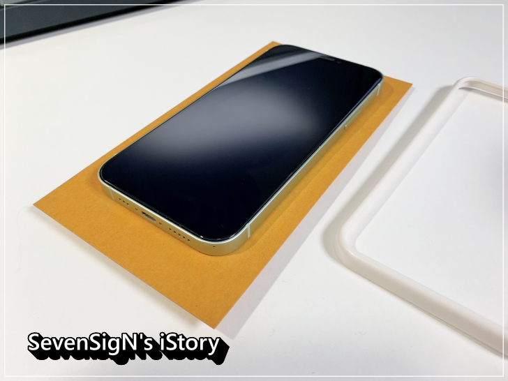 | 인비지아이언에는 이미 보셨다시피 EZ FIT 가이드가 포함되어 있어서 쉬운 부착을 도와주는데요, 이렇게 아이폰12에 장착해주고 강화유리를 그냥 올려놓듯이 두기만 하면 저절로 장착이 되는 방식이라 초보자도 충분히 부착할 수 있는 난이도로 만들어줍니다.