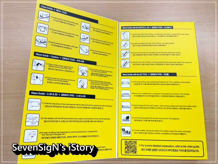 패키지 안쪽에는 종류별 부착가이드가 있는데요, QR코드를 촬영하면
