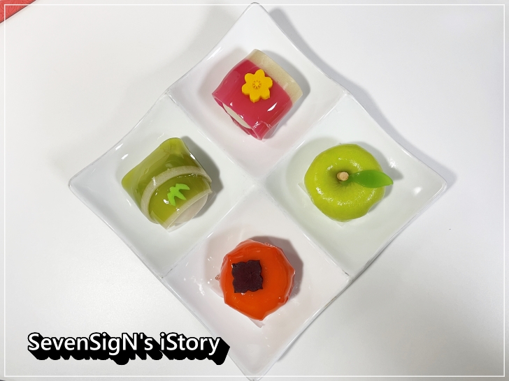 구성되어 있는 5개의 화과자 입니다. 개인적으로는 사과를 젤 좋아합니다.