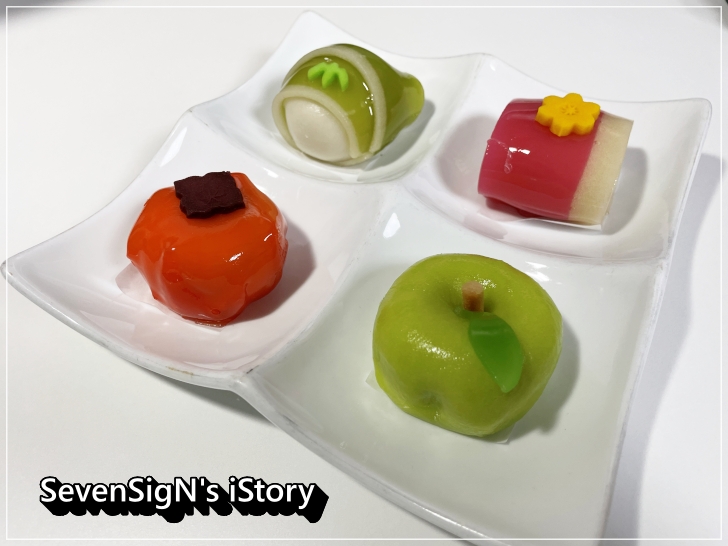 구성되어 있는 5개의 화과자 입니다. 개인적으로는 사과를 젤 좋아합니다.