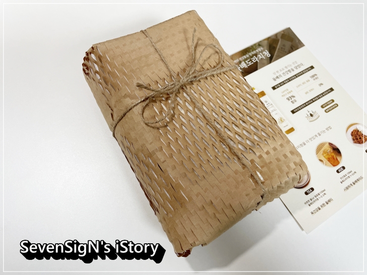 플라스틱과 비닐을 배제한 친환경 패키지를 마끈리본으로 마무리했죠