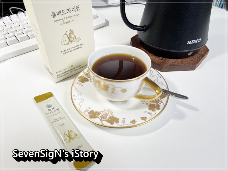 전 제일 먼저 뜨거운 돌배차를 한잔 마셔보기로 했습니다.