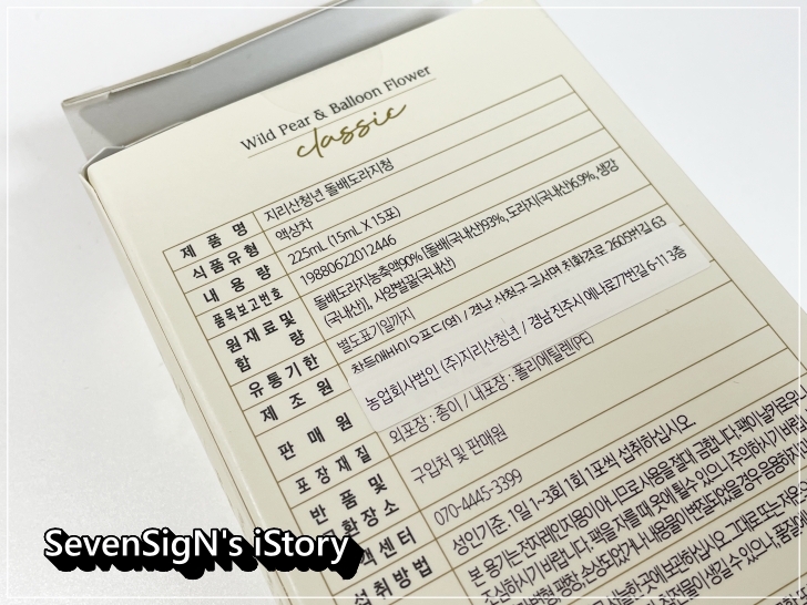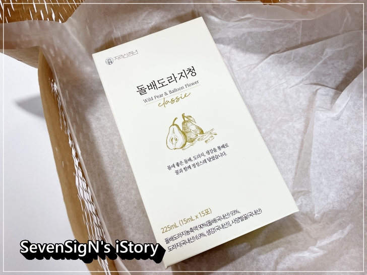 느낌있는 포장을 풀어보니 깔끔하고 믿음가는 디자인의 돌배도라지청 패키지 상자가 나오네요.
