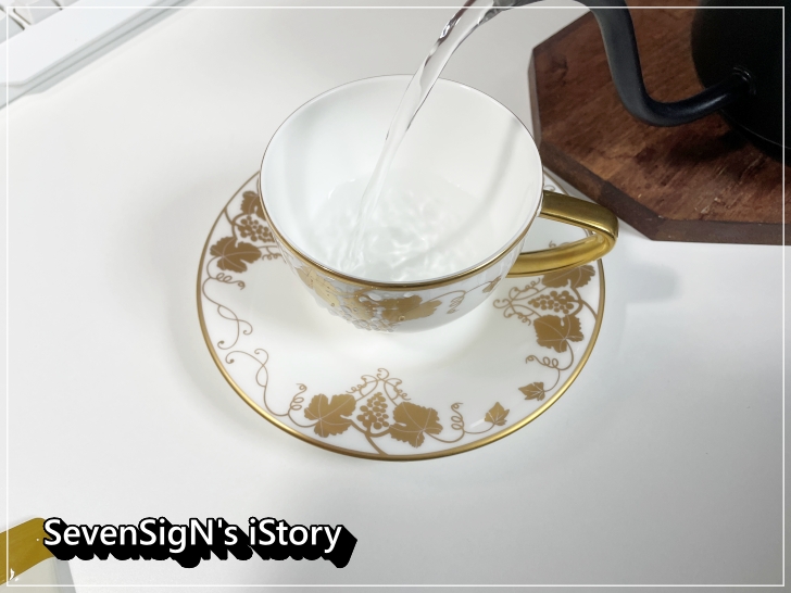 대충 양을 맞춰 찻잔에 뜨거운 물을 먼저 채웠습니다 ㅎ