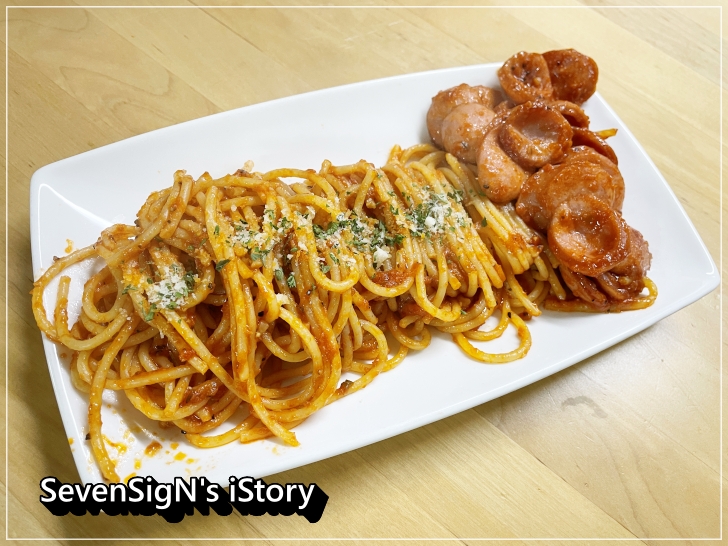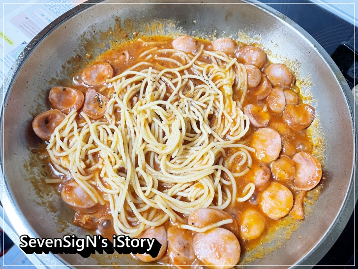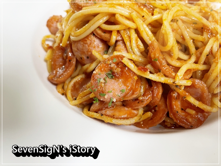 뚠뚠 소시지 토마토 파스타를 먹어봤습니다.