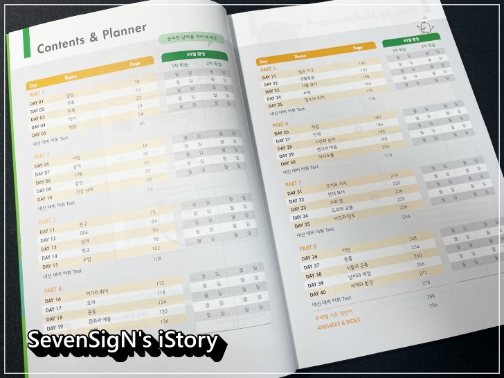 총 8개의 PART로 구성이 되면 매일 주제별 25개의 영단어를 공부하도록 구성이 되어있습니다.