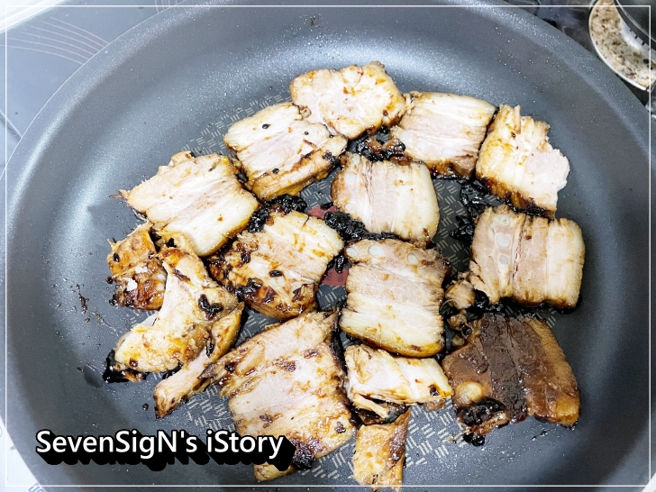 후라이팬을 충분히 달구고 동파육을 포장에서 꺼내서 잘 구워주면 끝이거든요.