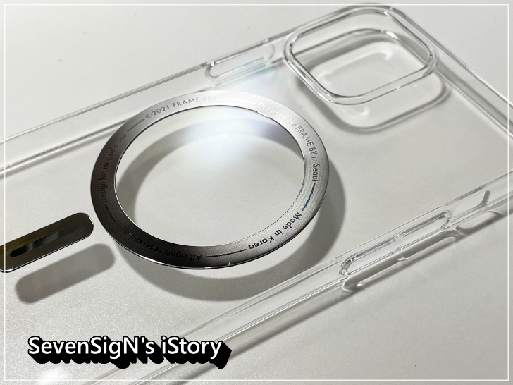 | 먼저 맥세이프케이스 에어를 개봉한 모습입니다. 폴리카보네이트 재질로 되어 있어서 투명하고 가벼움을 자랑하는 하드 케이스입니다. 그리고 중앙에는 맥세이프 자석이 부착되어 있는 것을 알 수 있습니다. 원래는 정교하게도 자석 위에 프레임바이 메탈스티커가 한겹더 붙어있는 형태라고 하네요.