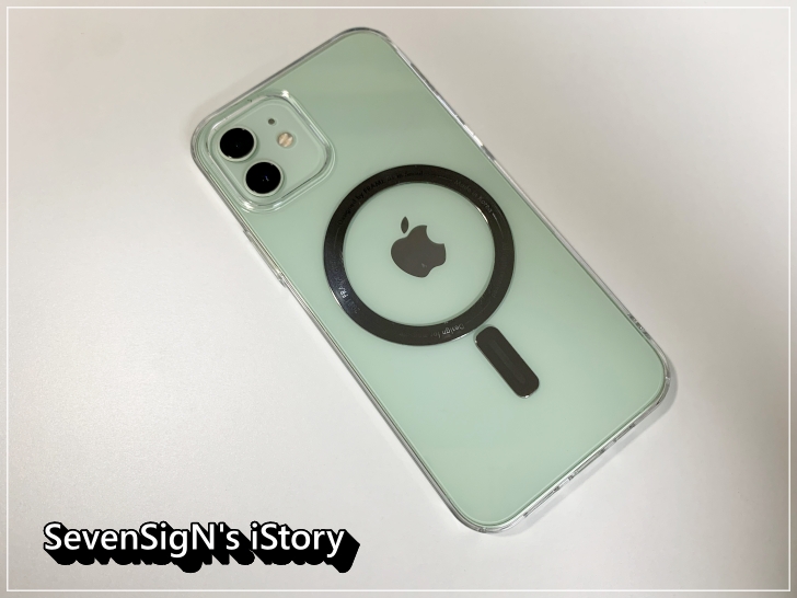 | 아이폰에 맥세이프케이스 에어를 장착한 모습입니다. 뒷면의 애플로고가 정중앙에 잘 위치하네요.