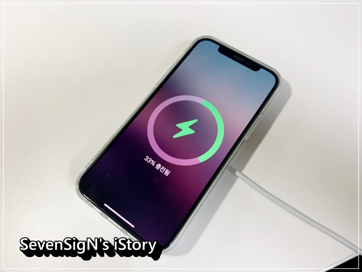 | 맥세이프 자석 부근에 맥세이프 충전기를 가져다 대면, 당연스럽게 착~ 하고 아주 잘 달라붙습니다. 흔들림없이 잘 고정되죠. 카드가 수납된 프레임케이스를 장착하더라도 자성이 비교적 강하게 유지되면 맥세이프 충전기를 사용할 수 있습니다.