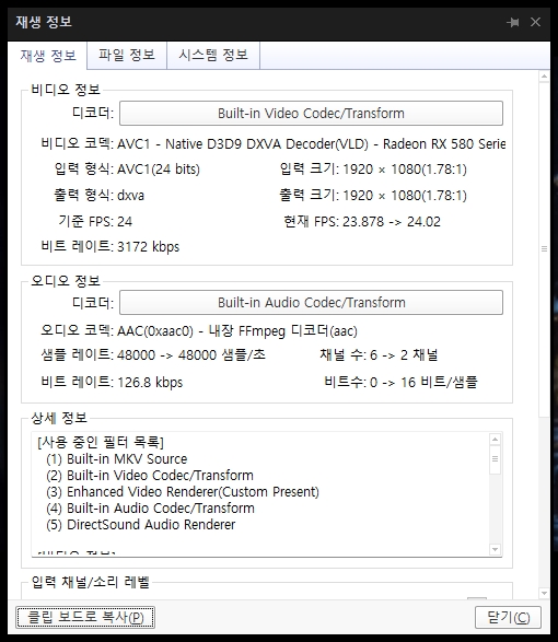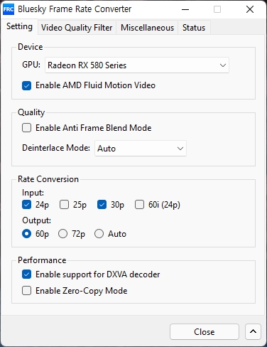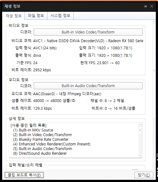 라데온 Radeon RX580 플루이드 모션 설정하기, Bluesky Frame Rate Converter+곰플레이어/팟플레이어