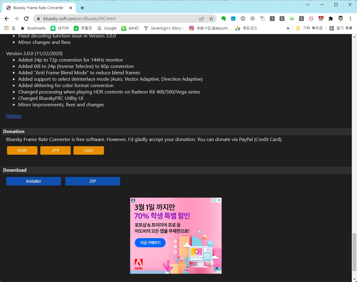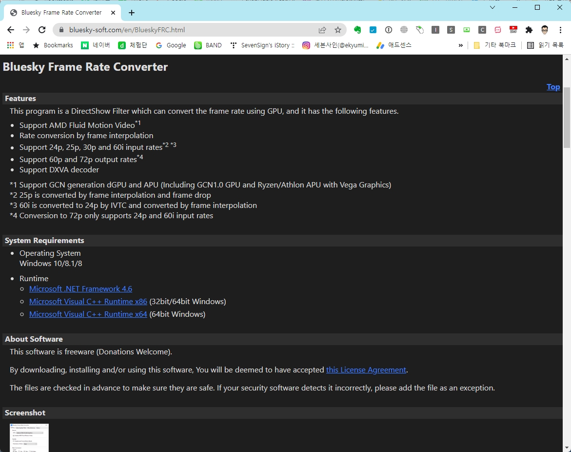 | 그래서 Bluesky Frame Rate Converter라는 프로그램을 먼저 설치해주고 몇가지 설정을 해줍니다. Bluesky Frame Rate Converter 홈페이지에 가서 아래로 내리면 프로그램을 다운받을 수 있습니다.