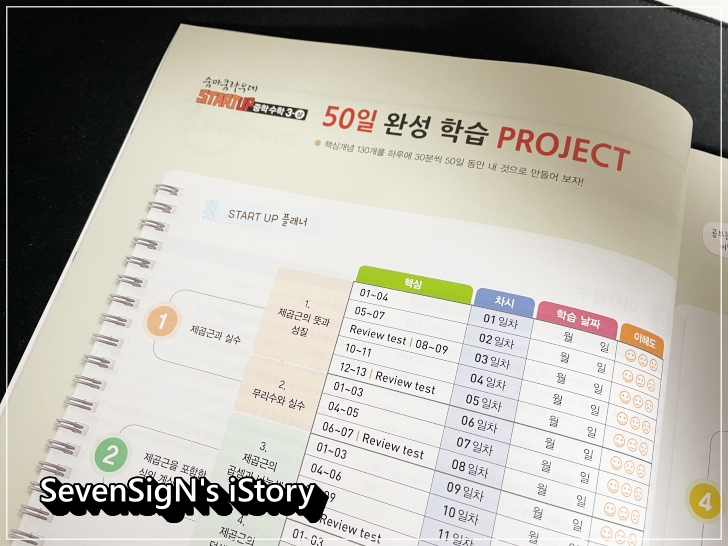 스타트엄 중학수학 3-상은 바로 50일 완성 학습으로 스케쥴링이 되어 있어서