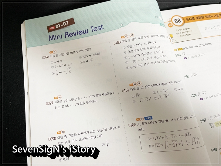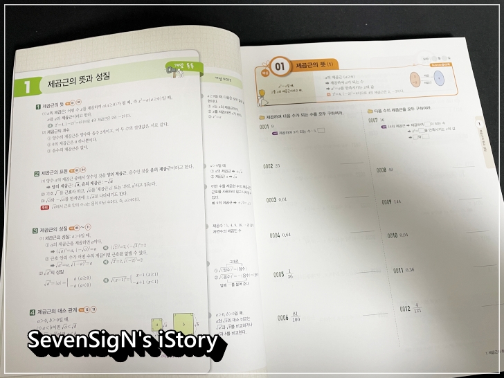 스타트업 중학수학 3-상에서는 '제곱근과 실수', '제곱근을 포함한 식의 계산',