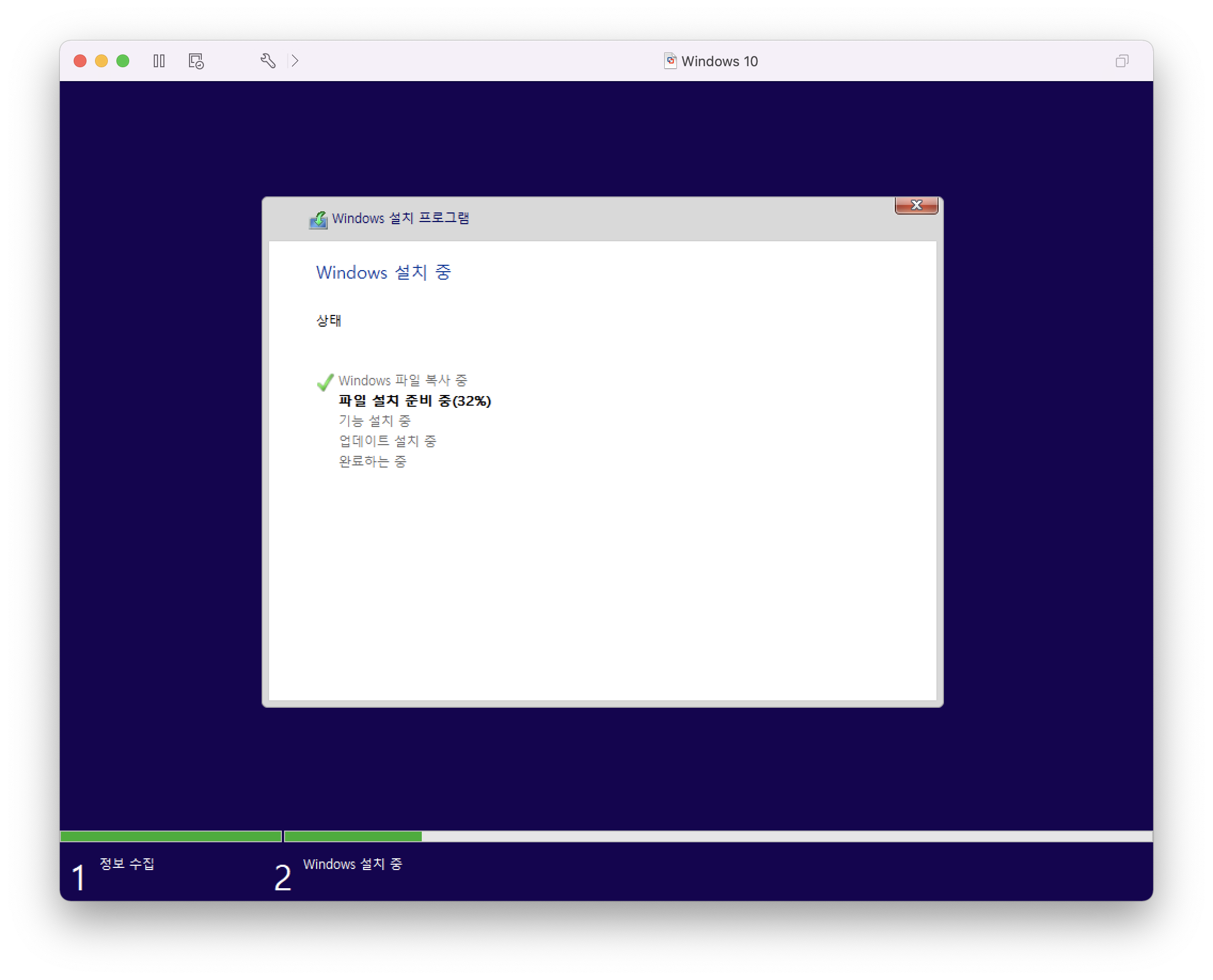 | 눈에 익숙한 윈도우 설치 진행과정이 나타납니다.