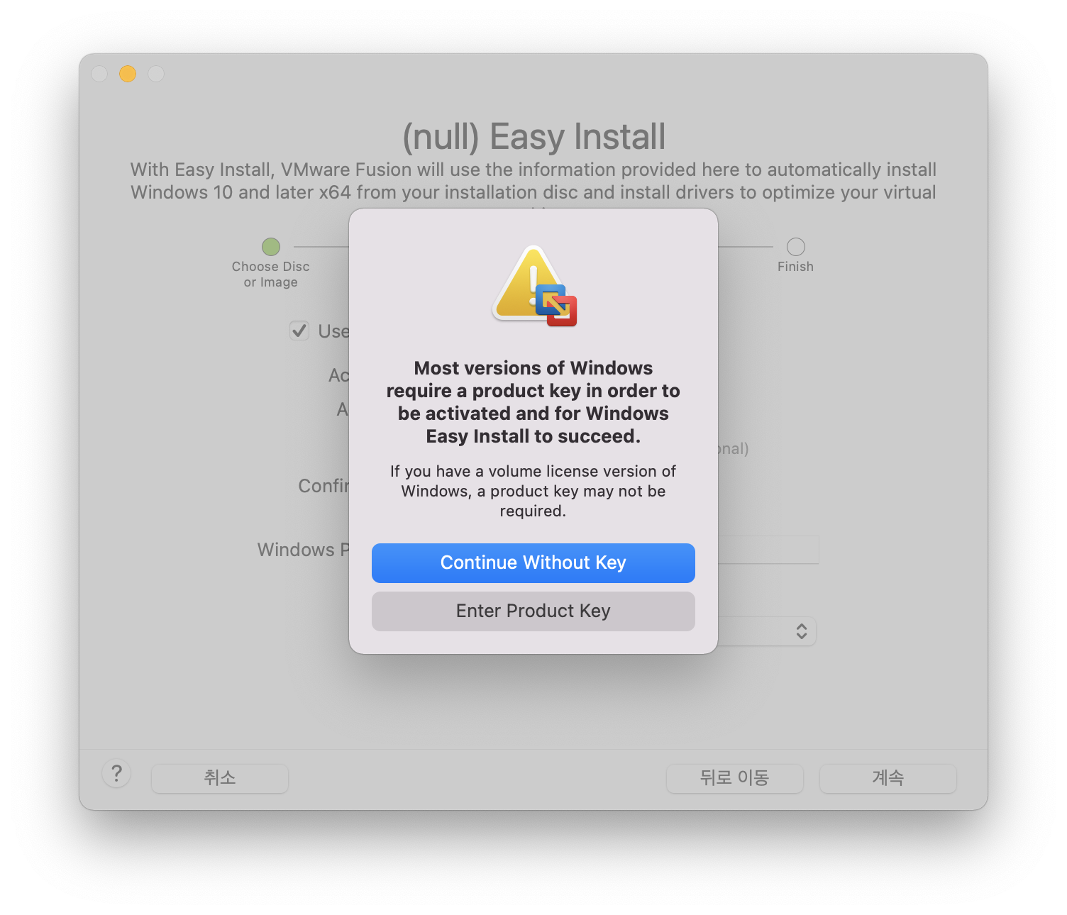 | 윈도우키가 없다면 'Continue Without Key'를 누르고 계속 진행합니다.