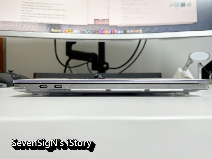 | 보이아 맥북 투명 케이스를 장착하고 접은 상태로 한 컷 찍어봤습니다. 당연히 맥북 그 자체보단 두꺼워졌지만 신경쓸 정도는 아니구요,