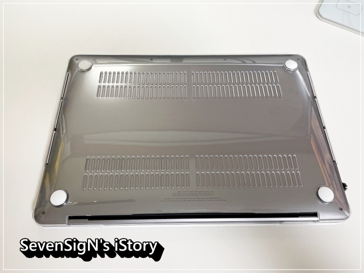 | 보이아 맥북 투명 케이스는 상판과 하판으로 나뉘어져 있습니다. 하판에는 맥북의 발열을 위한 송풍구도 마련되어 있습니다. 별거 아닌 거 같지만 이렇게 열을 배출해주는 구조 좋은 것 같습니다.