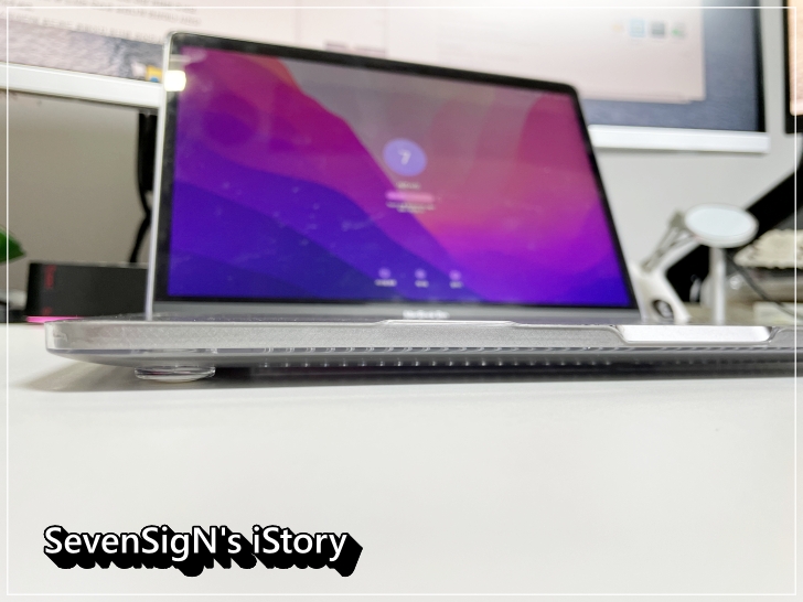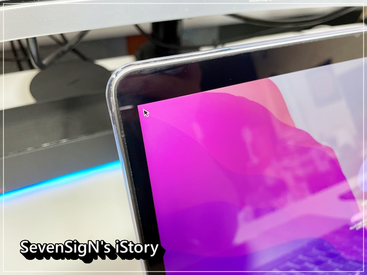 | 그리고 각 모서리 부분에 맥북처럼 실리콘 패드가 부착되어 있어서 미끄럼을 방지하며 맥북의 안정적인 거치를 지원합니다.