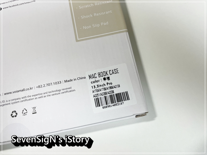 | 투명 그 자체라 컬러에 대해선 따로 언급할 필요가 없네요 ㅋ 보이아 맥북 투명 케이스는 투과율도 높고 변색에도 강한 폴리카보네이트(PC) 재질로 되어 있어서, 맥북 본연의 컬러를 나타내는데 좋다고 합니다.