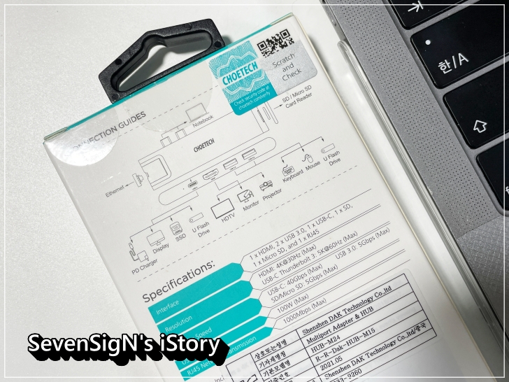 | 초텍 7 in 2 멀티허브를 맥북 측면에 연결해주고 필요하 포트를 사용하면 됩니다.