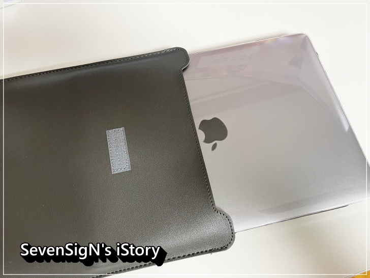 맥북에 투명케이스를 사용하고 있는데, 케이스가 장착한 상태로도 충분히 수납이 가능합니다.