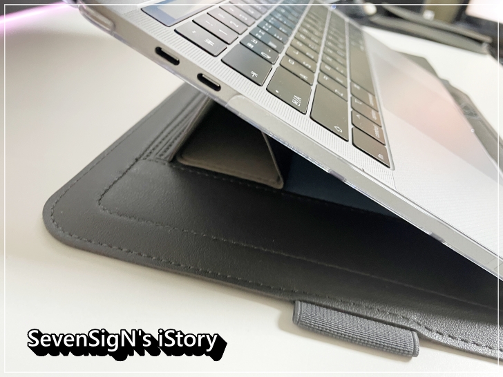 스트랩은 맥북을 지탱해주는 역할을 함께 해줍니다.